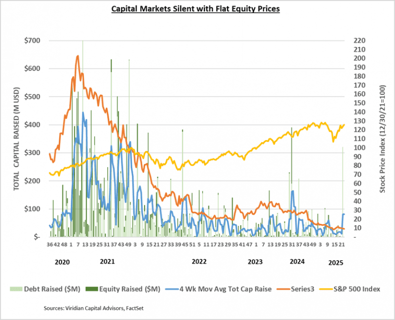 Each week, Viridian publishes insights and analysis on completed capital raise transactions in the prior week, focusing on all equity and debt deals. Our analysis includes: