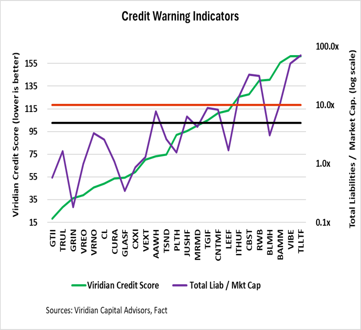 - Investors need not be surprised by credit issues. Monitoring the Viridian Credit ranking and total liabilities-to-market cap will often provide critical early warning signals.