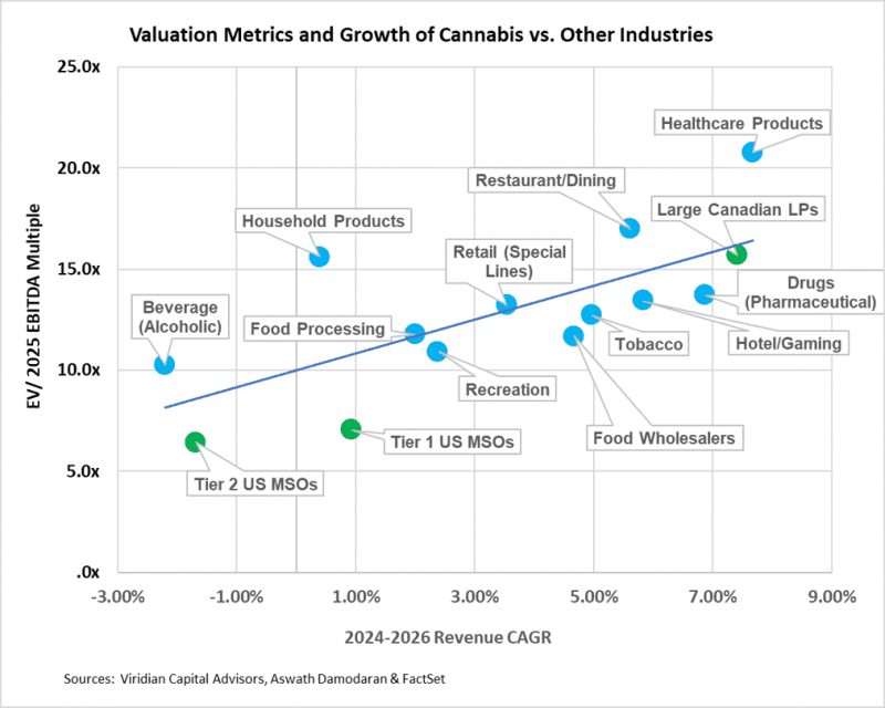 Home » Viridian Capital Chart of the Week: Cannabis Valuations Relative to Other Industries Updated
