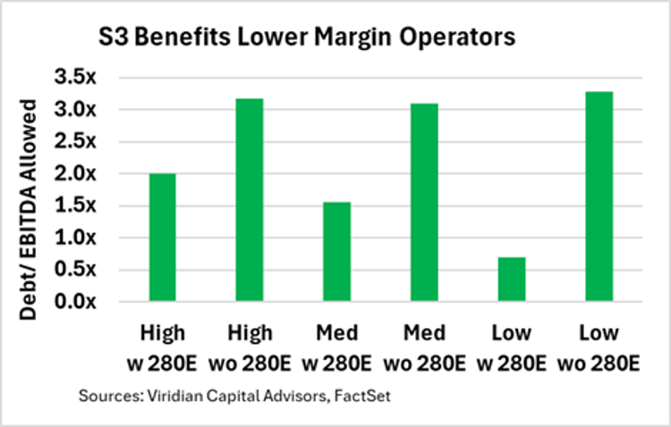 • The Viridian Chart of the Week explores the impact of the elimination of 280E on three types of operators, High Performers, Medium Performers, and Low Performers, in order to model the degree to which S3 would impact their relative debt capacity.