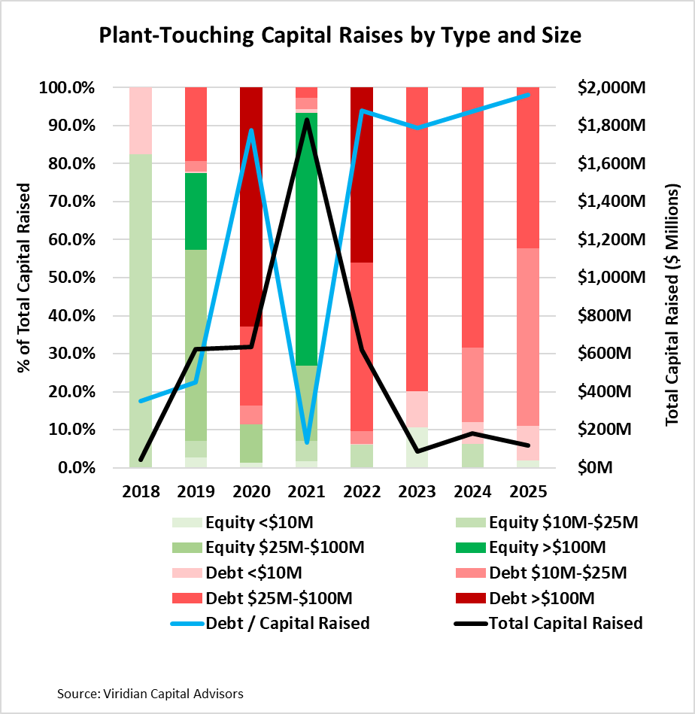 Home » Viridian Capital Chart of the Week: U.S. CULTIVATION & RETAIL CAPITAL RAISES FOR THE FIRST 15 WEEKS OF 2025 ARE DOWN 35% FROM THE SAME PERIOD IN 2024 AND ARE VIRTUALLY ALL DEBT