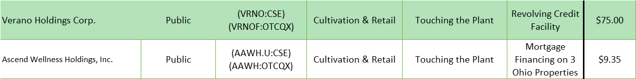 Viridian publishes weekly insights on debt capital raises in the Cannabis/CBD/Psychedelic industries. These insights typically highlight the most interesting/meaningful debt transactions of that week, and commentary on market conditions, debt deal structures, and lenders.