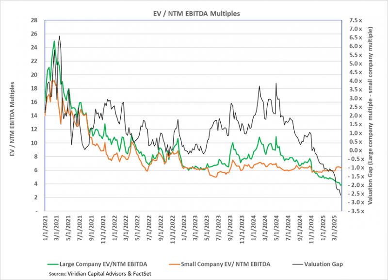 • The Valuation Gap measures the difference between the EV/ NTM EBITDA multiple for the largest MSOs and the same multiple for the next smaller group. This measure has been a significant driver of M&A activity since a larger gap creates an opportunity for more accretive transactions.