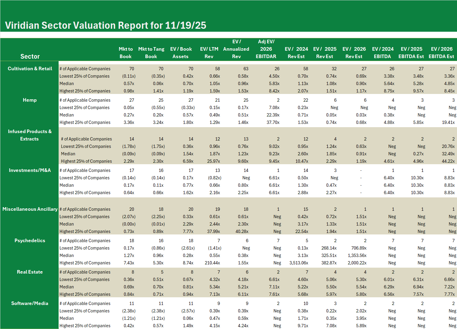 Sector Valuation Report – Worldwide Cultivation & Retail Sector as of 11/19/25