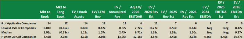 - The table below shows valuation metrics for the eleven US MSOs with market caps over $100M