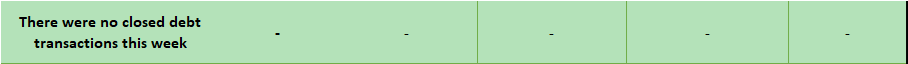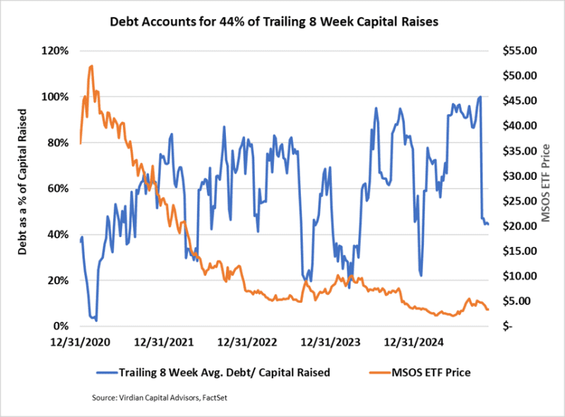 - Debt accounted for 45% of trailing 8-week capital raises.