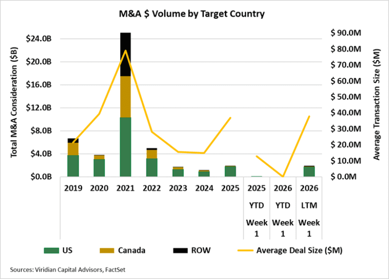 - Two M&A deals closed with a total disclosed transaction value of $25.5M during the week ended January 2nd, 2026.