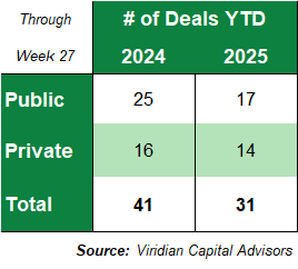 The Viridian Capital Chart of the Week highlights key investment, valuation, and M&A trends taken from that week’s Deal Tracker that we believe are impactful for investors, companies and acquirers.